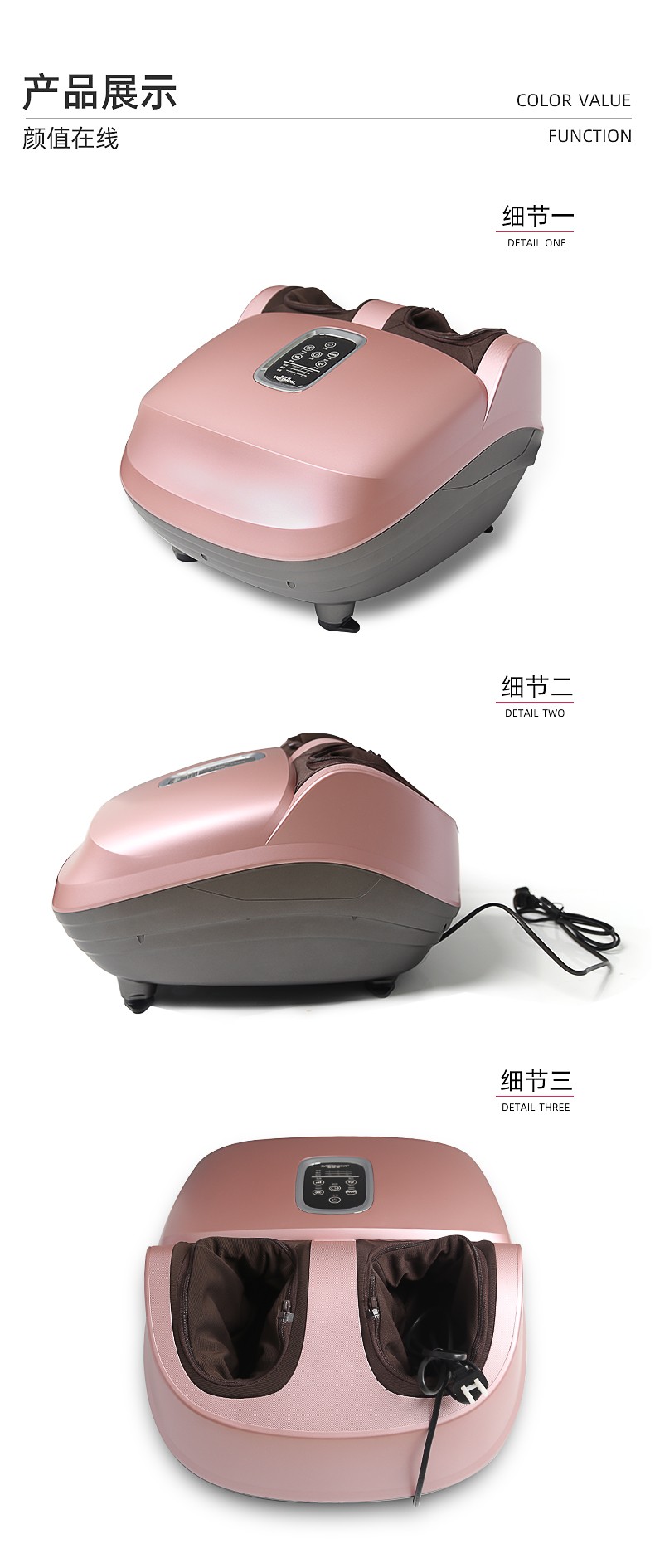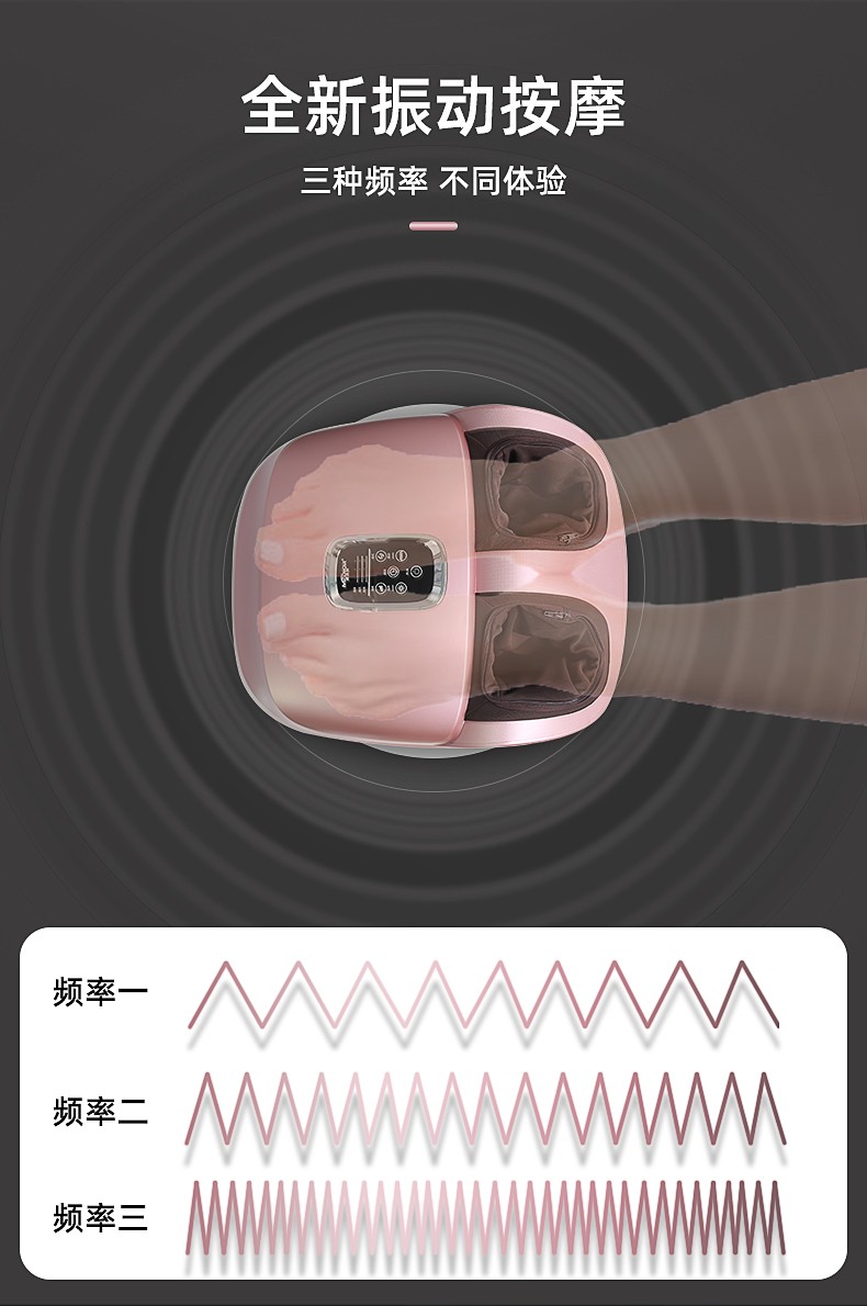 滾輪按壓(腳趾)、刮痧(腳弓)、捶打(腳后跟)按摩 (多模式,多強(qiáng)度);