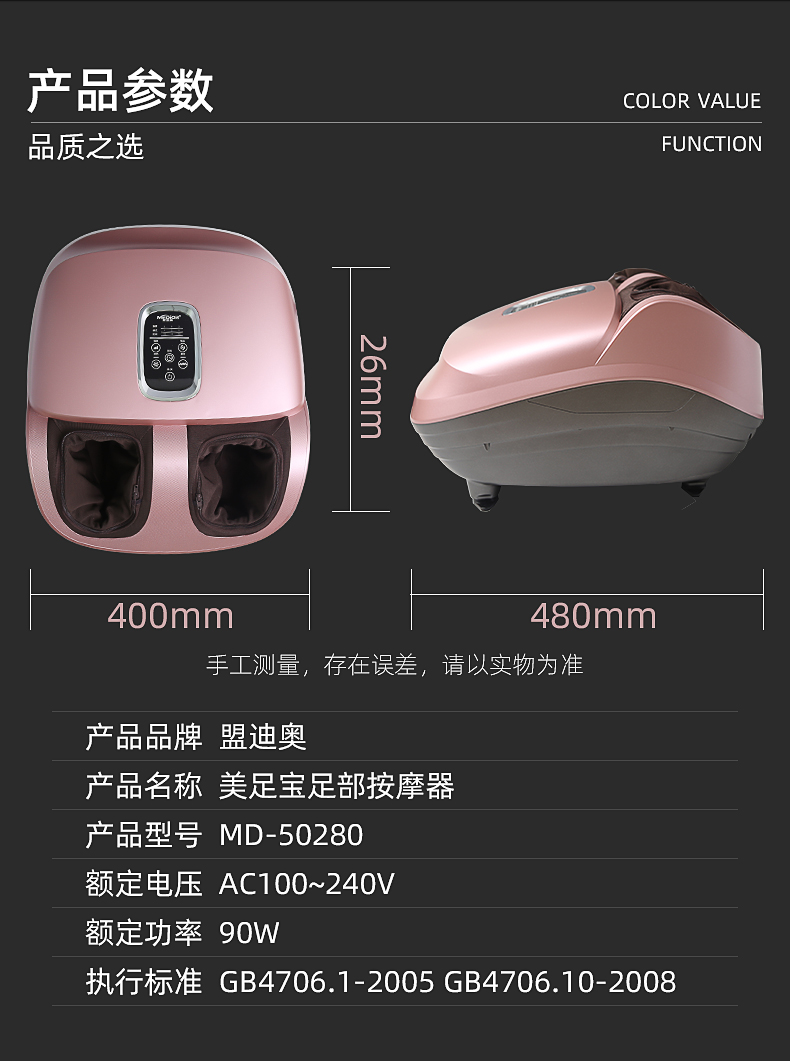 4種震動(dòng)方式選擇(快速,中速,慢速,不震動(dòng));定時(shí)10,15,20分鐘關(guān)機(jī);