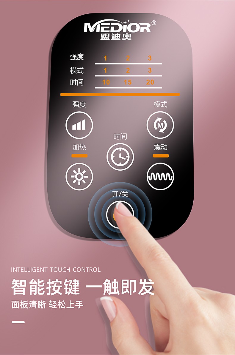 六觸控按鍵:模式,震動(dòng),時(shí)間,開(kāi)關(guān),強(qiáng)度,加熱